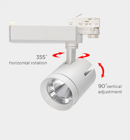 Universal line voltage led track lighting heads, fit in 3 phase 4 wires track systems.Adjustable Angle track lights with 355 degrees horizontal rotation, 90 degrees vertical adjustment, more accurate and professional multi-angle lighting beams.